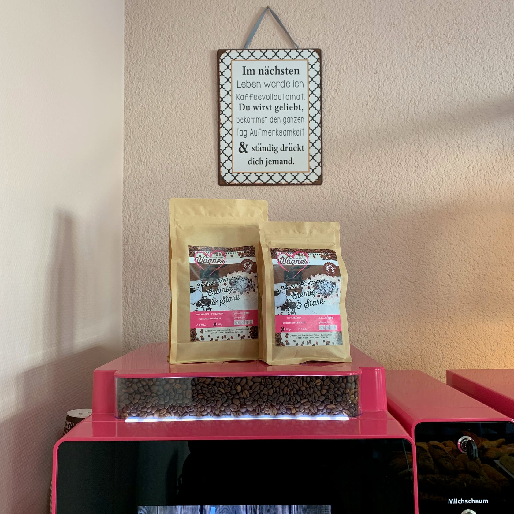 Nach einer Kaffeeverkostung haben wir uns für einen Kaffee in unserem Vollautomaten entschieden und zwei Kaffees für unsere Kunden, zum Verkauf ausgesucht.
