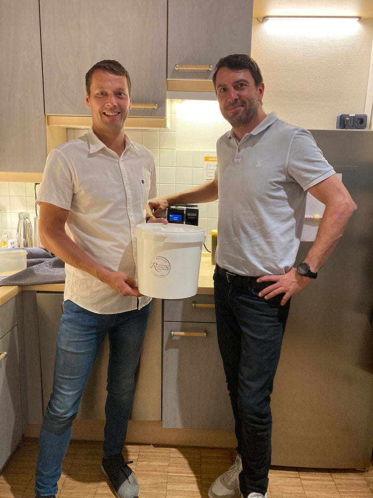 Nach einer intensiven und sehr sympathischen Beratung von Sandra und Ralf Philipp und einer Verkostung mit unseren Mitarbeitern haben wir uns vier verschiedene Sorten ausgesucht, die wir in den praktischen Mehrweg-Eimern geliefert bekommen und abwechselnd in unsere Kaffee-Maschinen füllen.